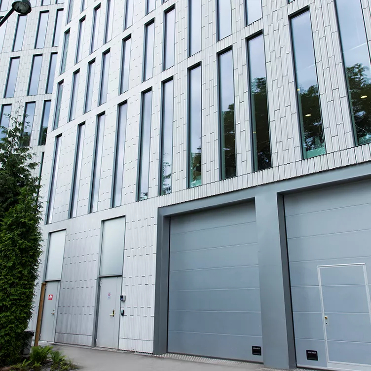 ASSA ABLOY OH1042P overhead sectional industrial doors are the optimal entrance solution for working facilities. Ideal for businesses looking for reliable, robust, well-insulated and space-saving doors in "operational entrances". This attractive, rugged door performs equally well as an industrial or commercial entrance system. The ASSA ABLOY OH1042P slides up under the ceiling when opened, maximising free space in and around the door opening.