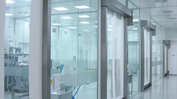 Cleanroom high speed doors feature an almost airtight seal, which minimizes pressure drop and protects your environment against drafts, humidity, dust and dirt. The airtight doors comply with international cleanroom standards and are certified the Fraunhofer Institute.