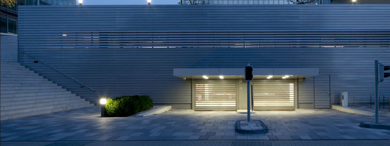 Avec une vitesse de plus de 2 m/s, la porte automatique de parking ASSA ABLOY RR5000 est rapide, sûre et silencieuse, et son design s'intègre facilement à tous les environnements urbains, historiques comme modernes.
