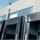 A row of loading docks with black dock shelters.