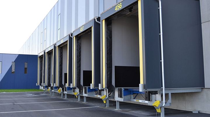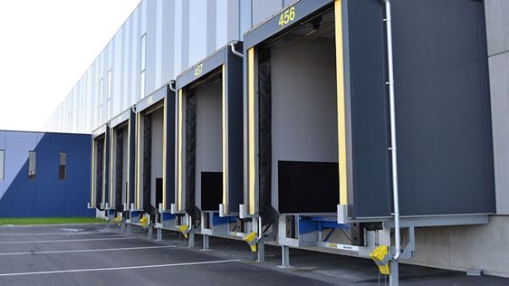 Independent loading system, containing all the relevant components: leveler, shelter and door.