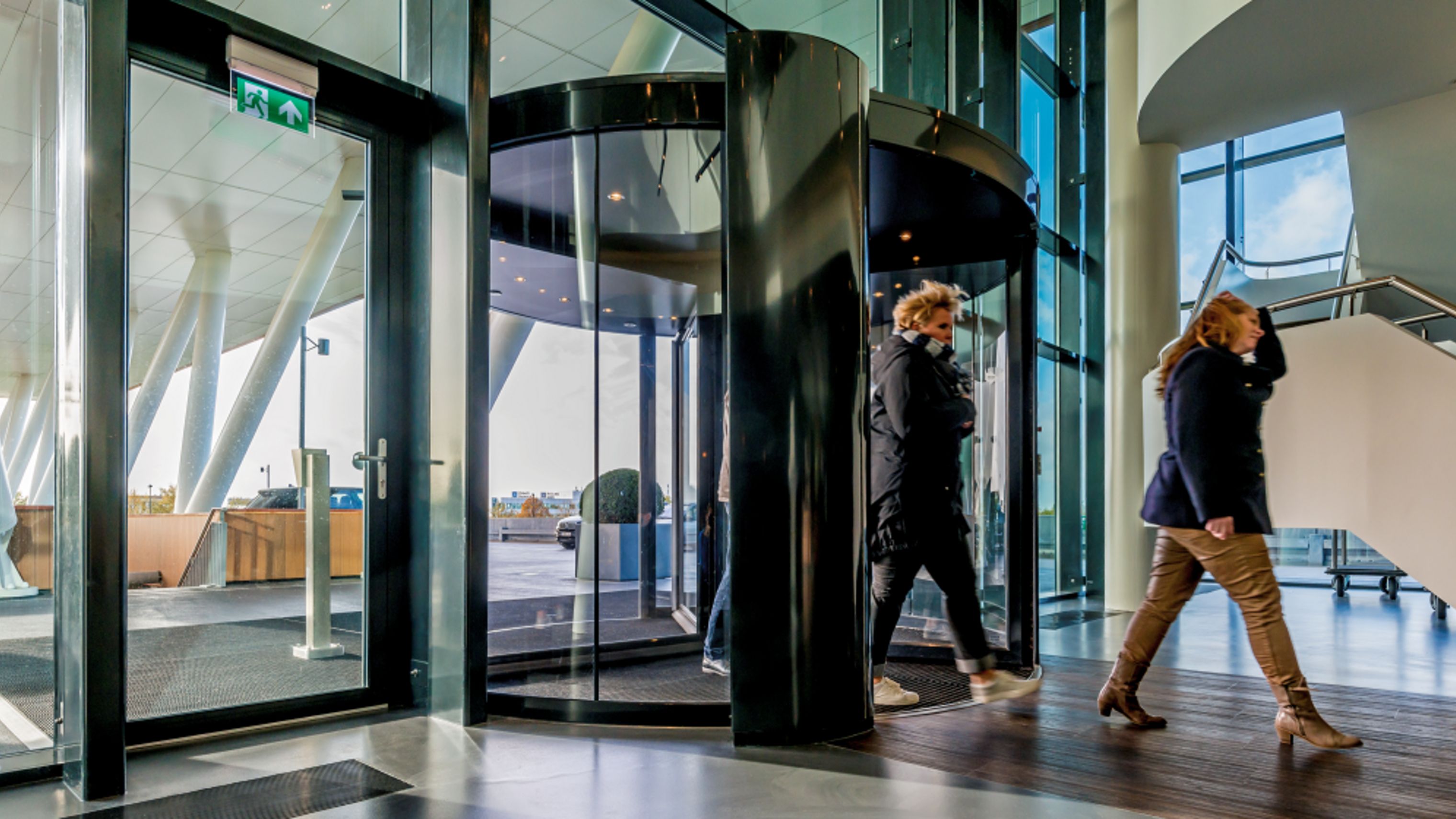 The key feature of revolving doors is that they eliminate draughts, maintaining a steady temperature. In offices, this means reception can be located much closer to the entrance, reducing empty space and allowing reception rooms to be more functional.