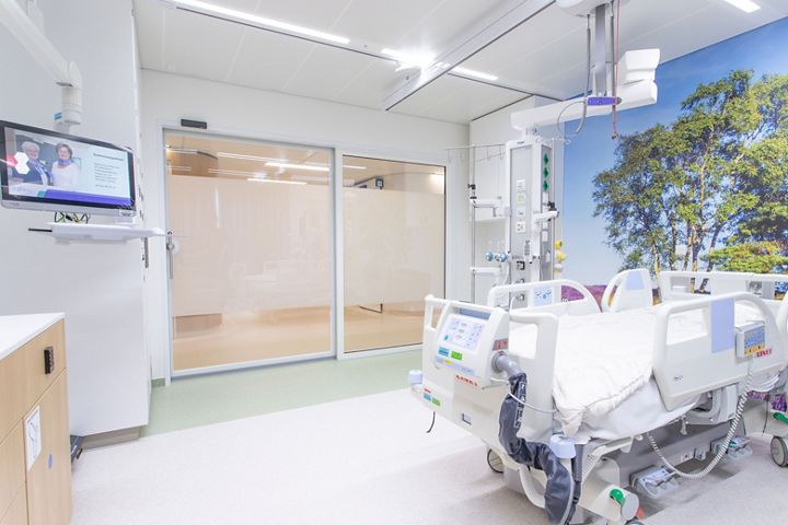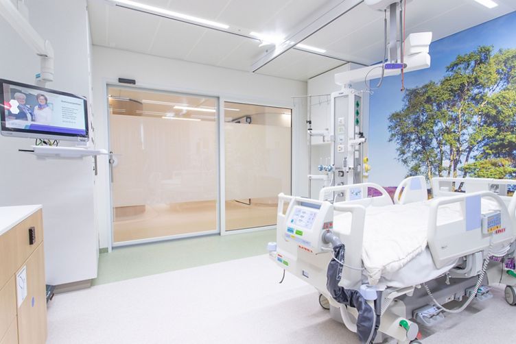 Glass sliding doors in a hospital