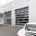Sidovy av glasskjutportar hos en bilhandlare.